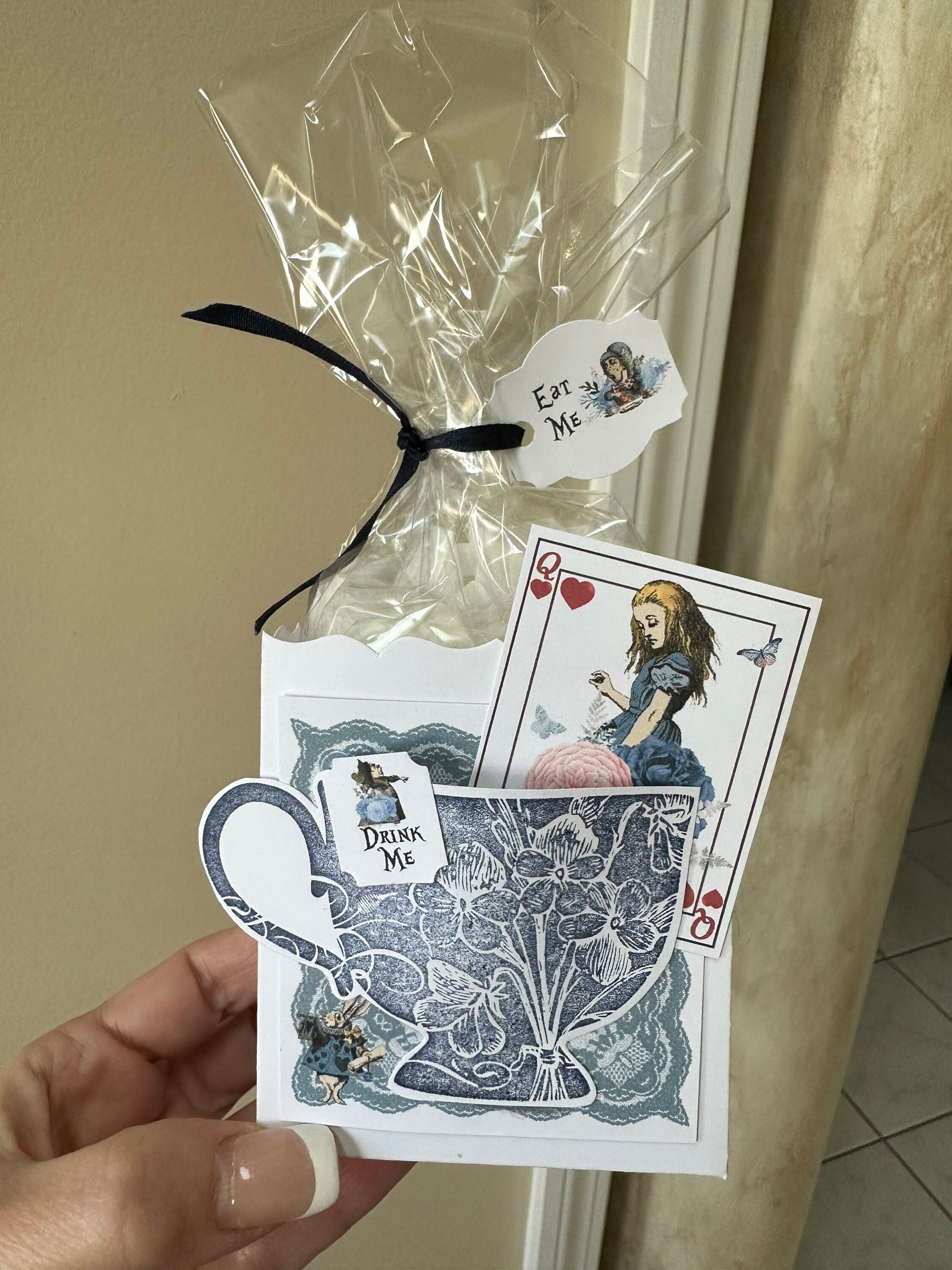 6 Fill My Teacup Navy Blue and Silver Alice in Wonderland tea party favors