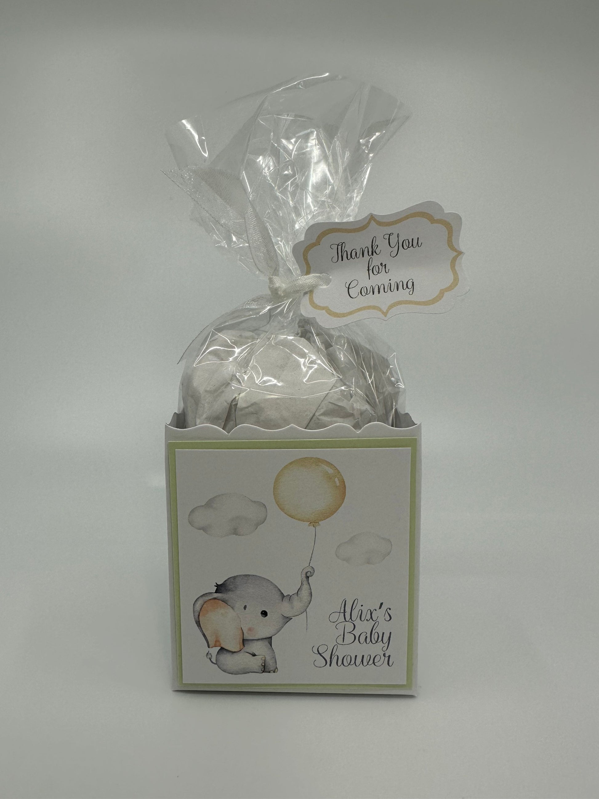 Baby Elephant with One Balloon Tea Party Favor Gift Box & Bag to stuff with edibles or small gifts Baby Shower Child Birthday Special Event