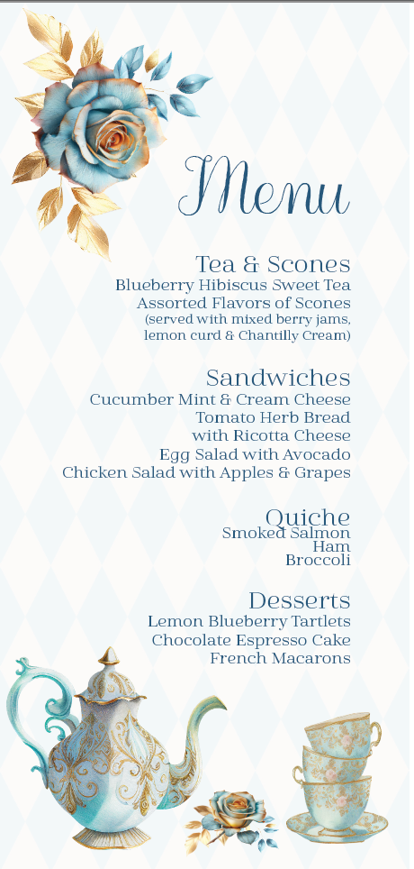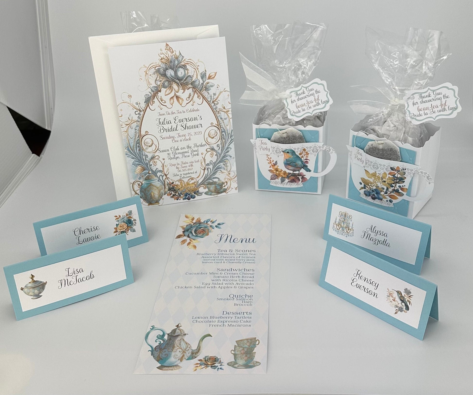 An absolutely Beau-Tea-Ful Blueberry Tea Party Ensemble is perfect for a Birthday, Wedding, Baby is Brewing, Bridal Shower or special event!