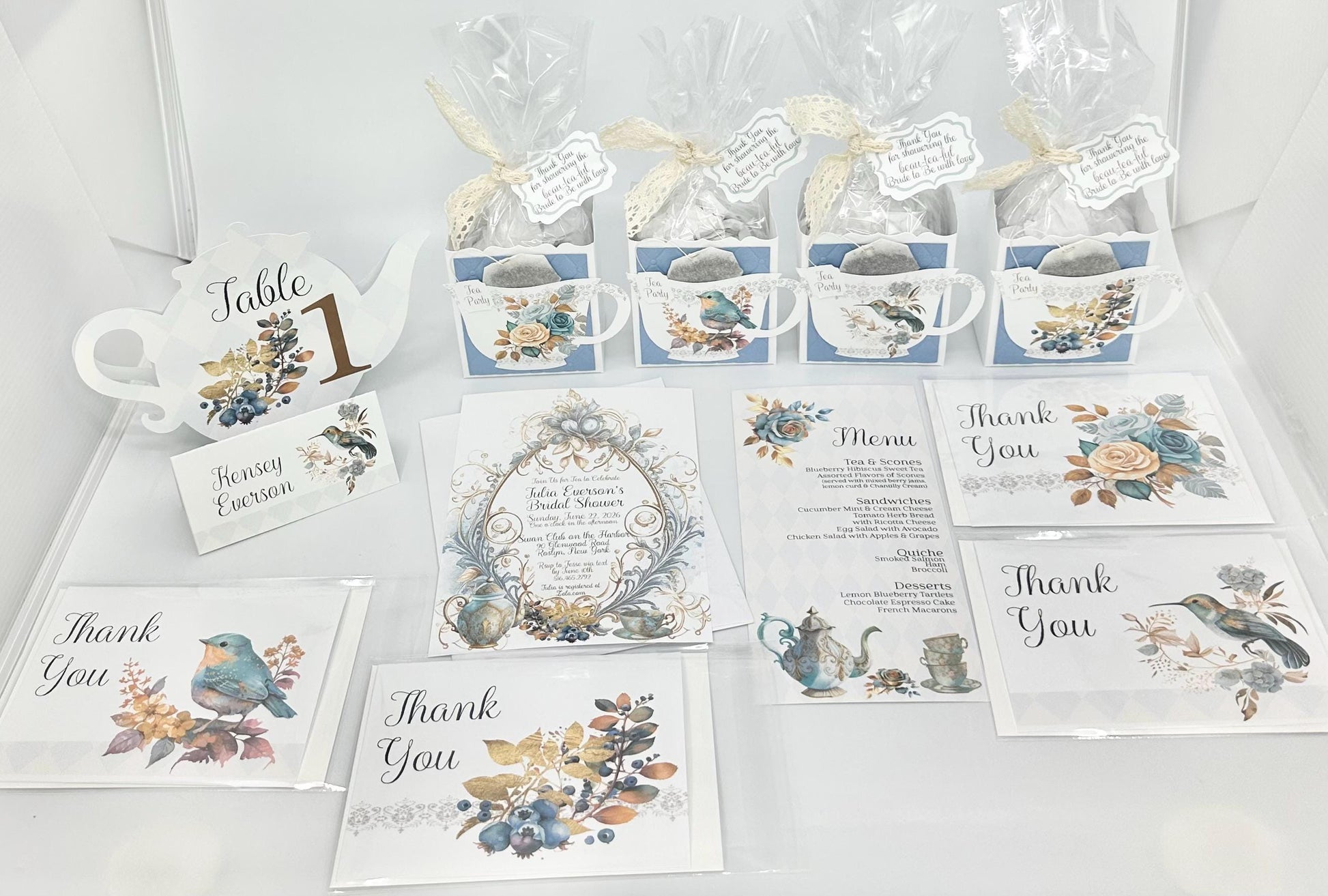 Blueberry Tea Party Invitation for Birthday, Baby is Brewing, or Beau-Tea-Ful Bridal Shower