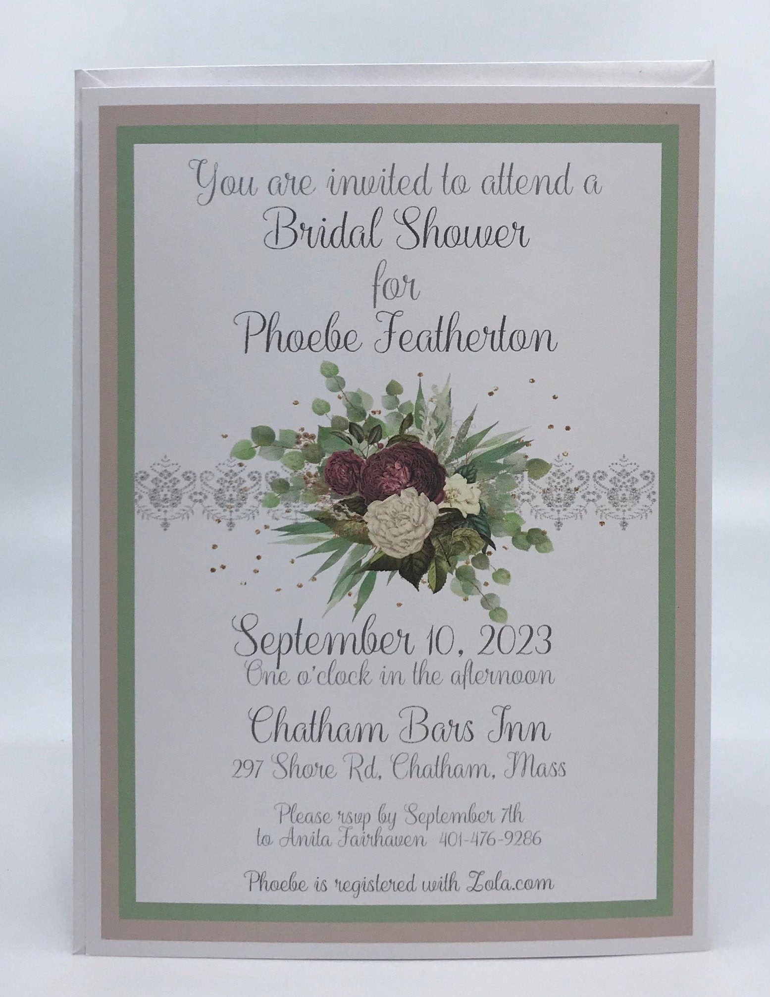 Burgundy Cream Sage Eucalyptus Floral Bouquet Bridal Shower Tea Party Favor