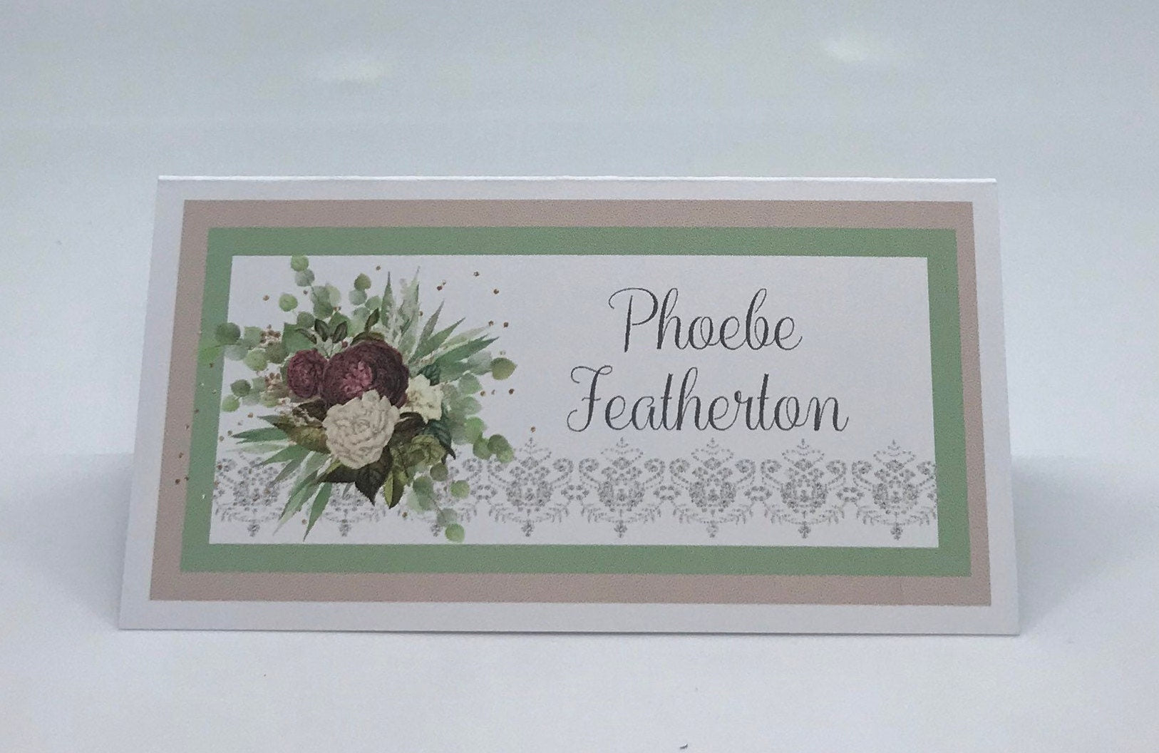 Burgundy Cream Sage Eucalyptus Floral Bouquet Bridal Shower Tea Party Favor