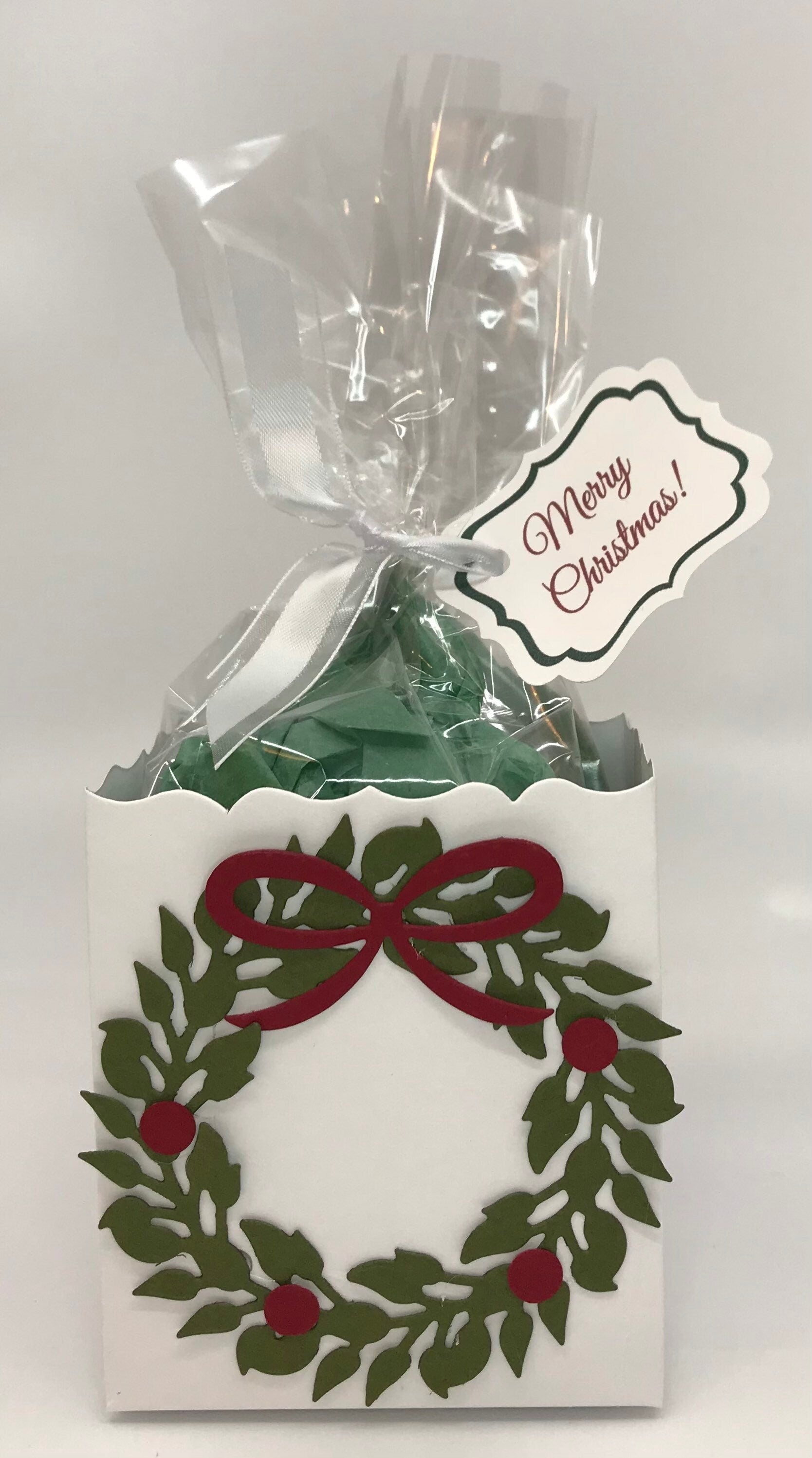 Favor includes decorated box with digital tag, plastic bag, and ribbon. Dimesions of box are 3.5 height, 3.18 width, and 2.25 depth. Ribbon may be slightly different due to inventory and vendor availability. Colored paper in bag not included.