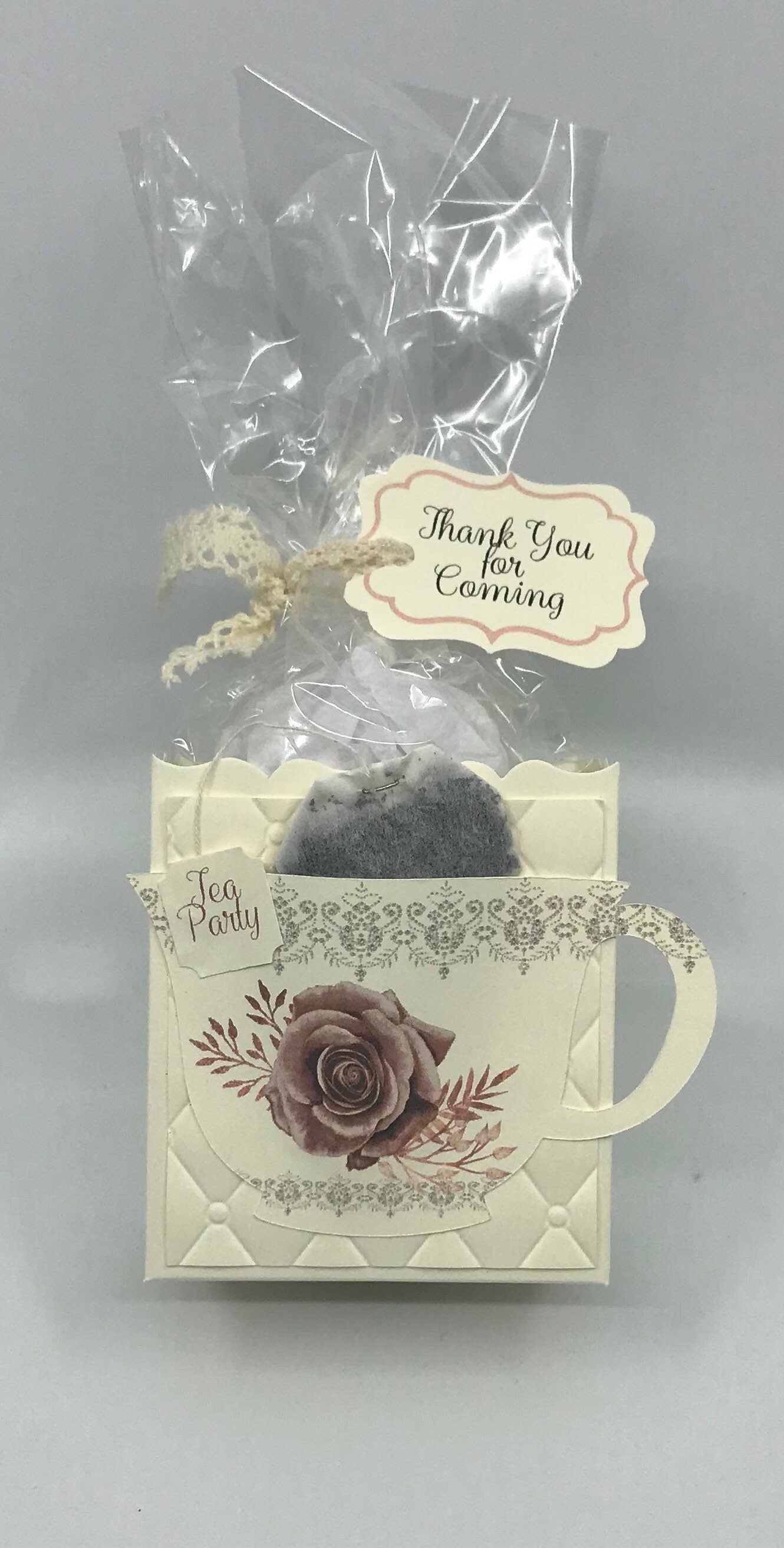 Favor includes decorated box with digitally personalized tag, cello bag, inedible tea bag and ribbon. You will need to add your own goodies to share with your guests so there is assembly to fill the bag then tie the ribbon with the tag.