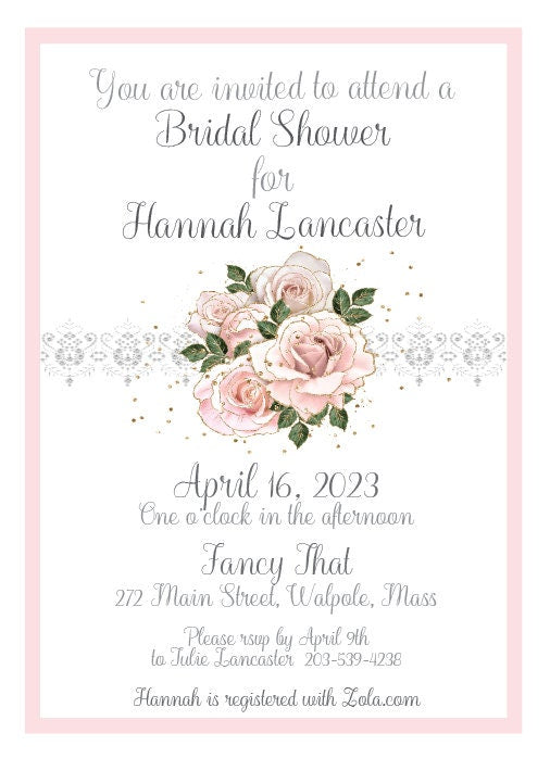 Gold Embellished Pink Rose Bridal Shower Tea Party Favor