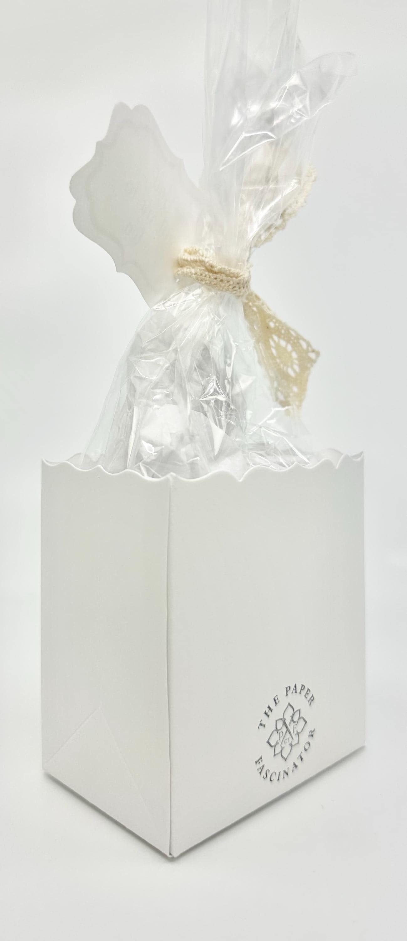 The purchase includes a tag, plastic bag and ribbon for you to assemble. You will fill the gift bag with your own products.