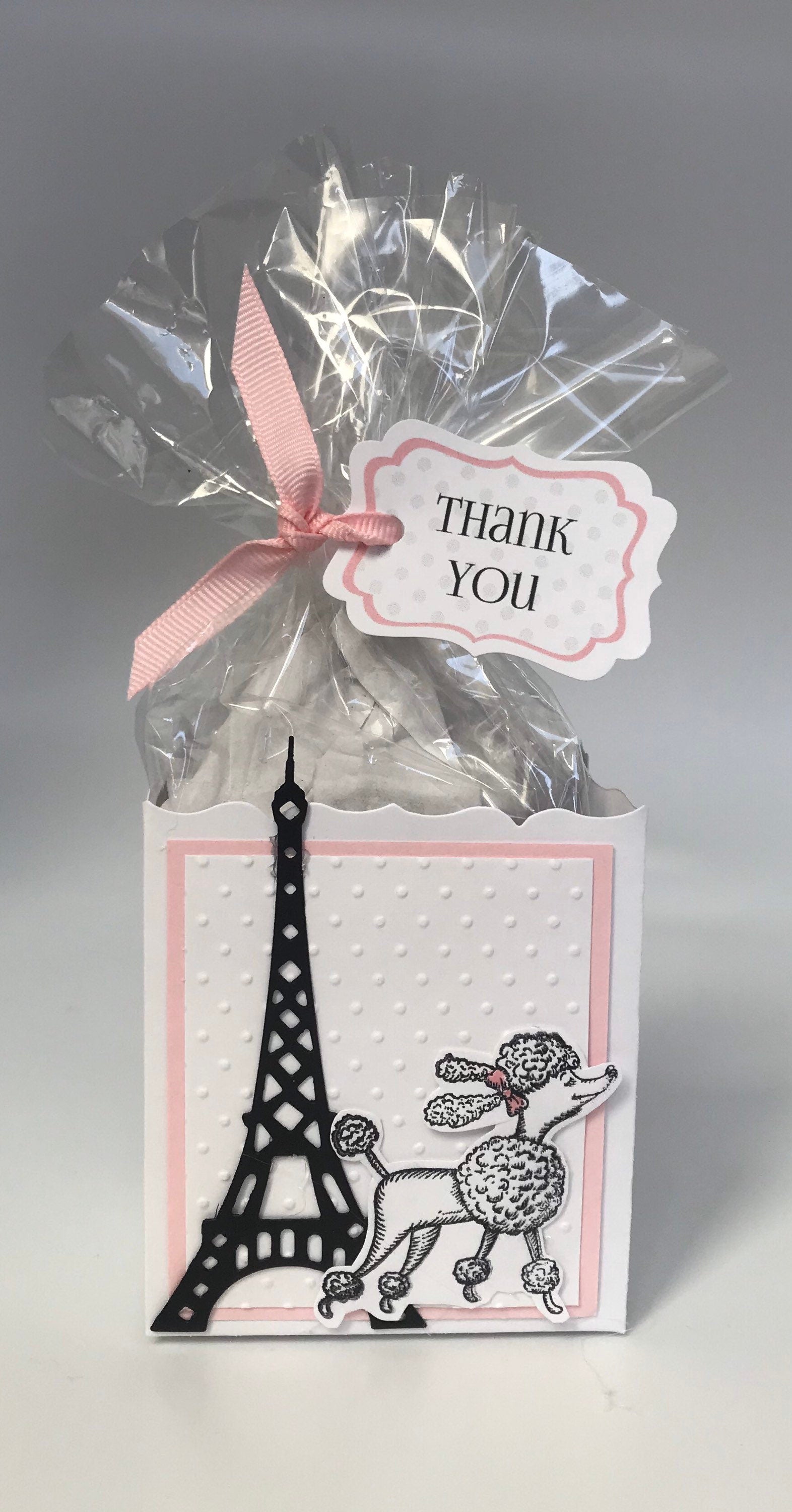This personalized Parisian party favor with a poodle is the perfect favor for any event to stuff with edibles.