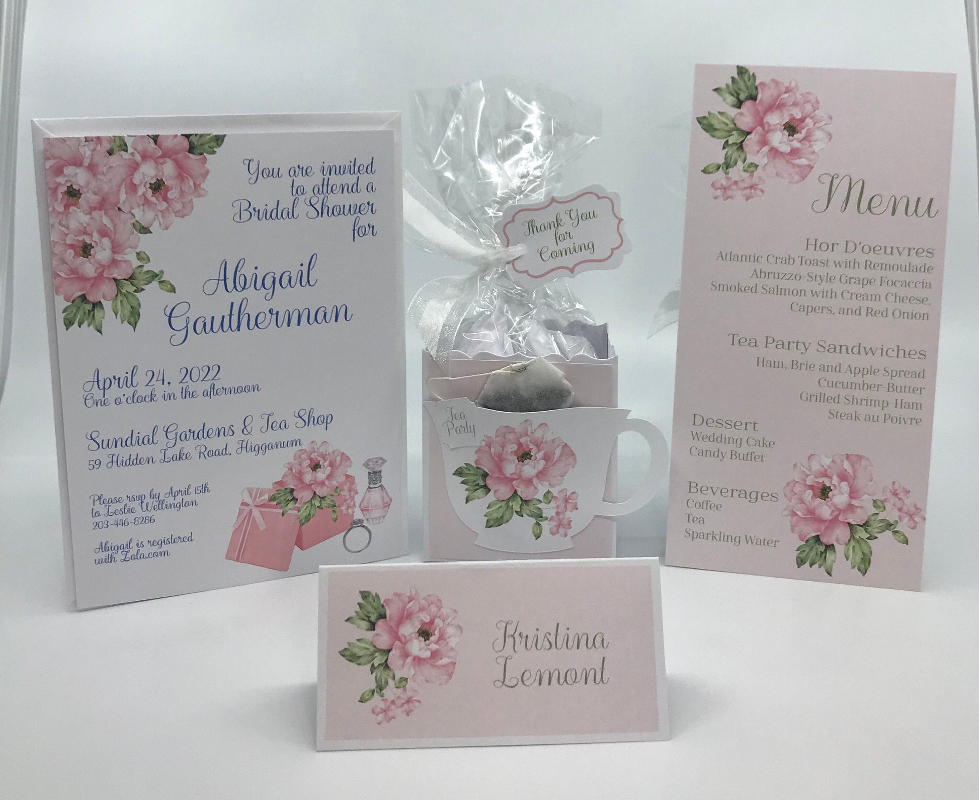 Pink Peony Bridal Shower Tea Party Kit Ensemble