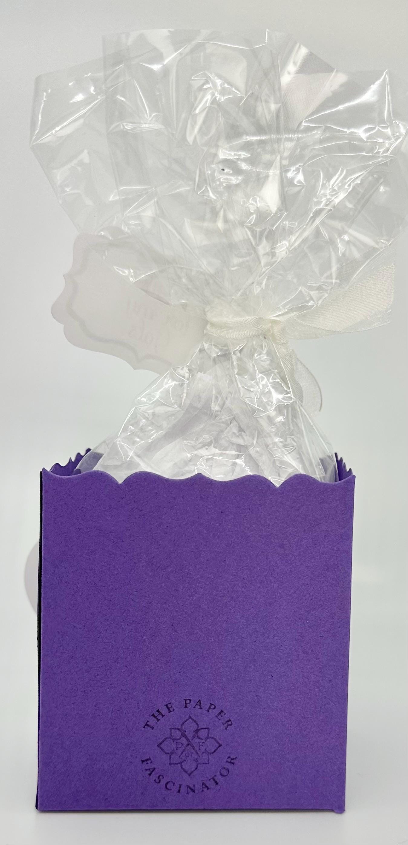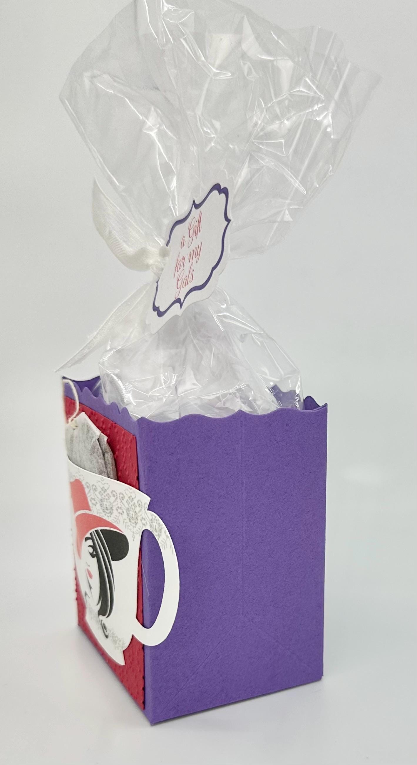 This personalized Red and Purple tea party favor gift box & bag is the perfect favor to stuff with edibles or small gifts for any event! From milestone birthdays to Sunday tea celebrations, this favor will be the perfect favor for the attendees.