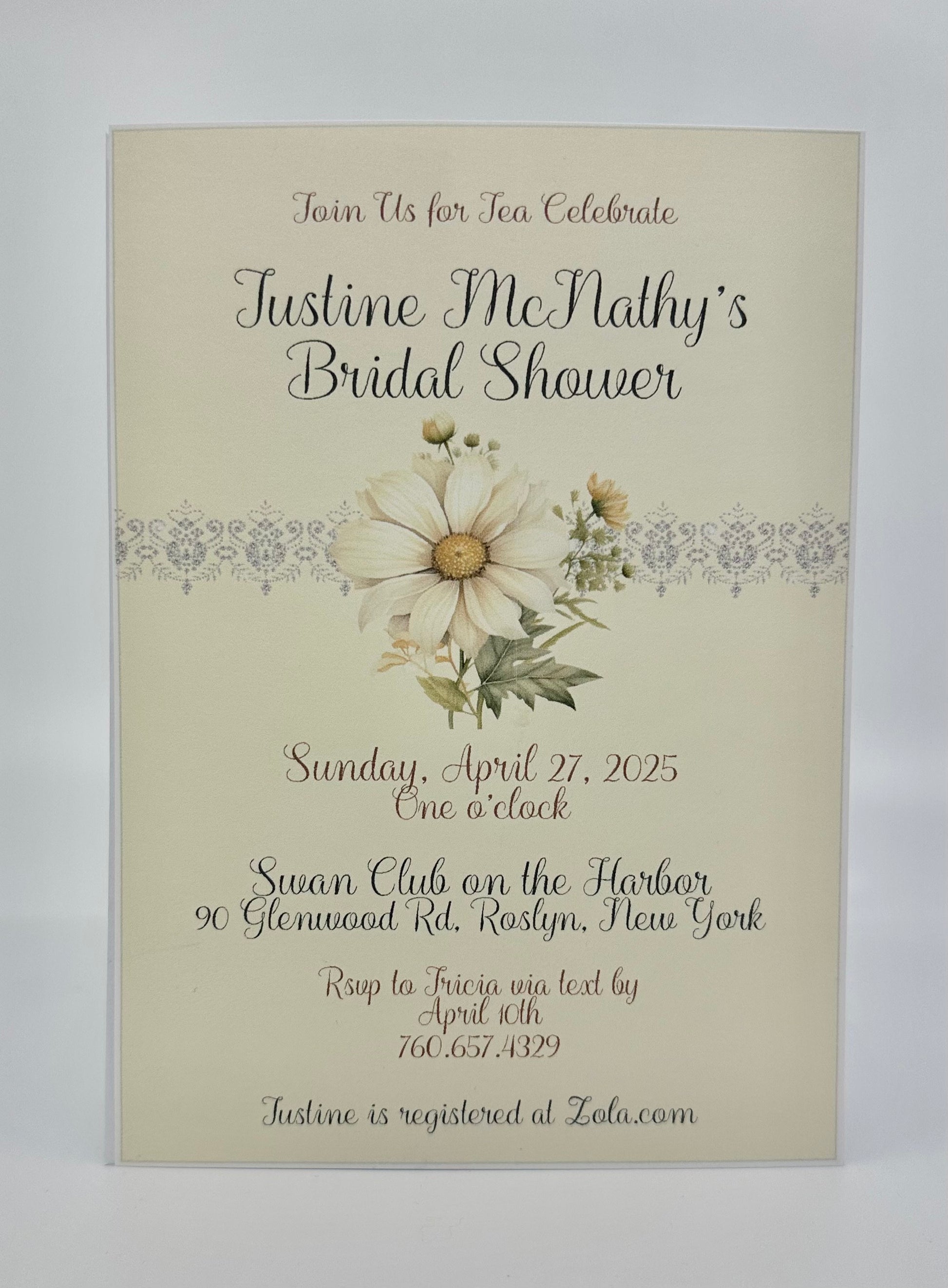With this listing, please provide all information to be printed on the invitation in the personalization section of the purchase within 24 hrs. I will provide a photo sample for you to proof on Etsy messenger after purchase within 24-48 hrs of receiving your information. I will print then mail your order after your approval. Please monitor your Etsy messenger box for drafts in photo form.