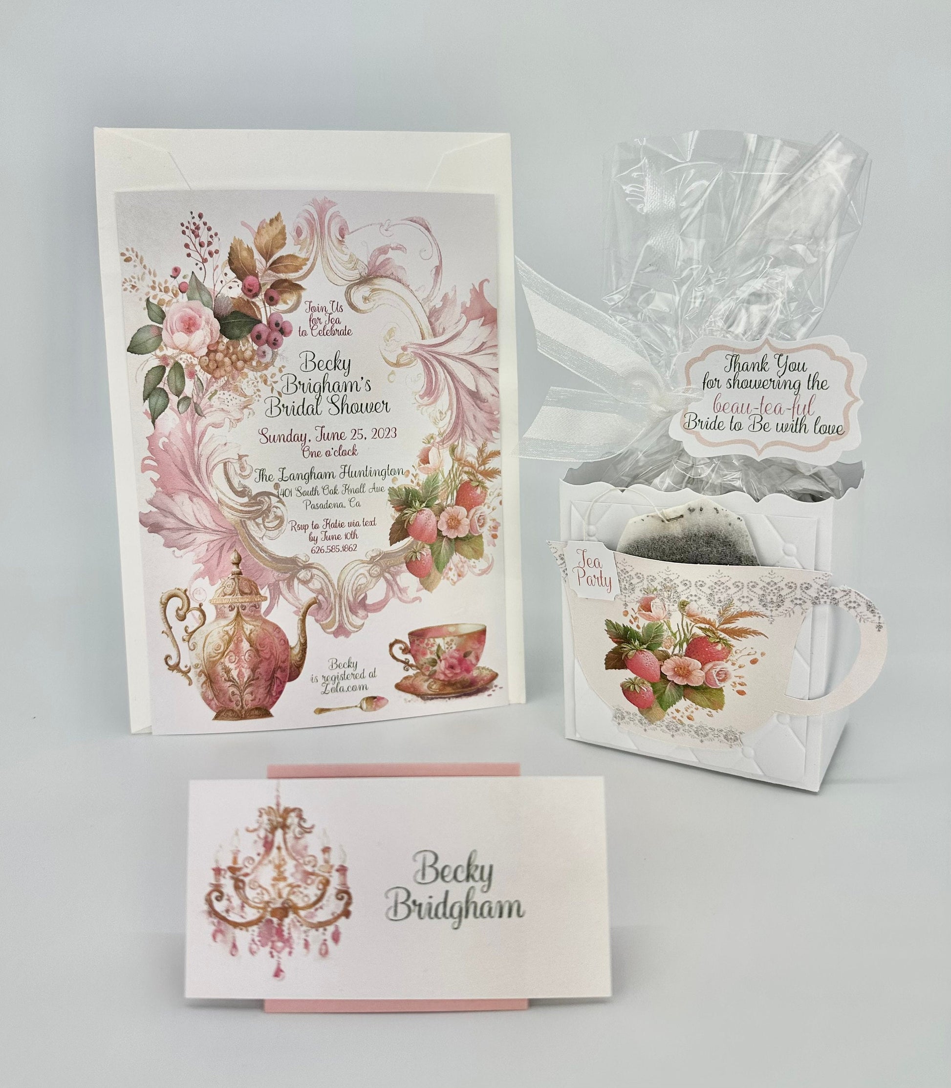 This personalized Strawberry Tea Party Favor is the perfect favor to stuff with edibles or small gifts for a birthday, beau-tea-ful bridal / baby shower or any event!