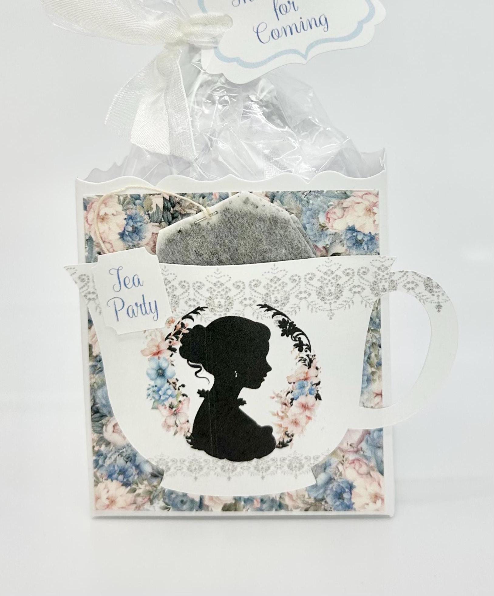Victorian Silhouette Blue Pink Cream Bouquet Tea Party Favor
