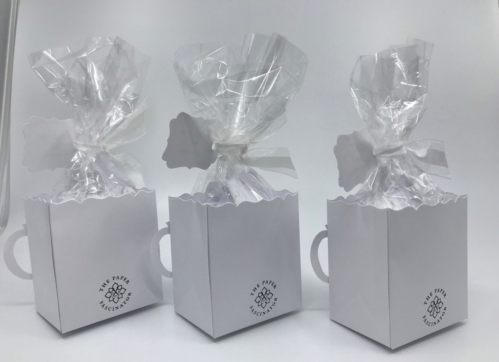 White on White Personalized Tea Party Favor Bag & Gift Box for Bridal Shower